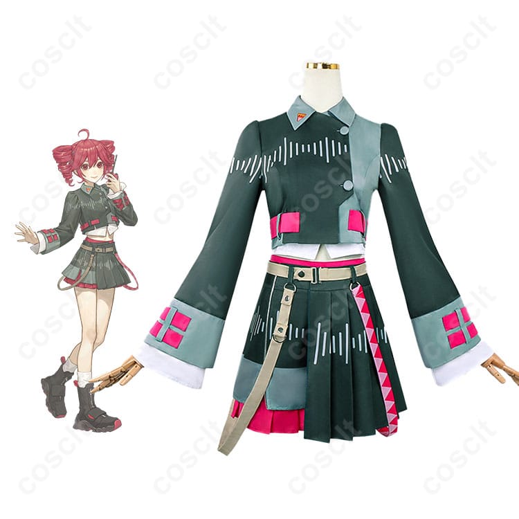 セット内容は、コート、インナー、スカート、ショートパンツ、ベルトの5点。細部の装飾やステッチまで、プロのコスプレイヤーが納得する仕上がりです。アクセントのベルト部分には合成皮革を使用し、質感と耐久性を両立しました。