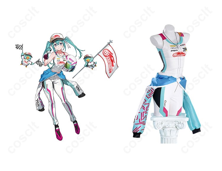 サーキットの風を感じるような疾走感と、ミクらしい透明感が共存するデザインです。メタリックな素材とブルーの差し色が映えるこの衣装は、ファンなら一度は着てみたい憧れの一着。